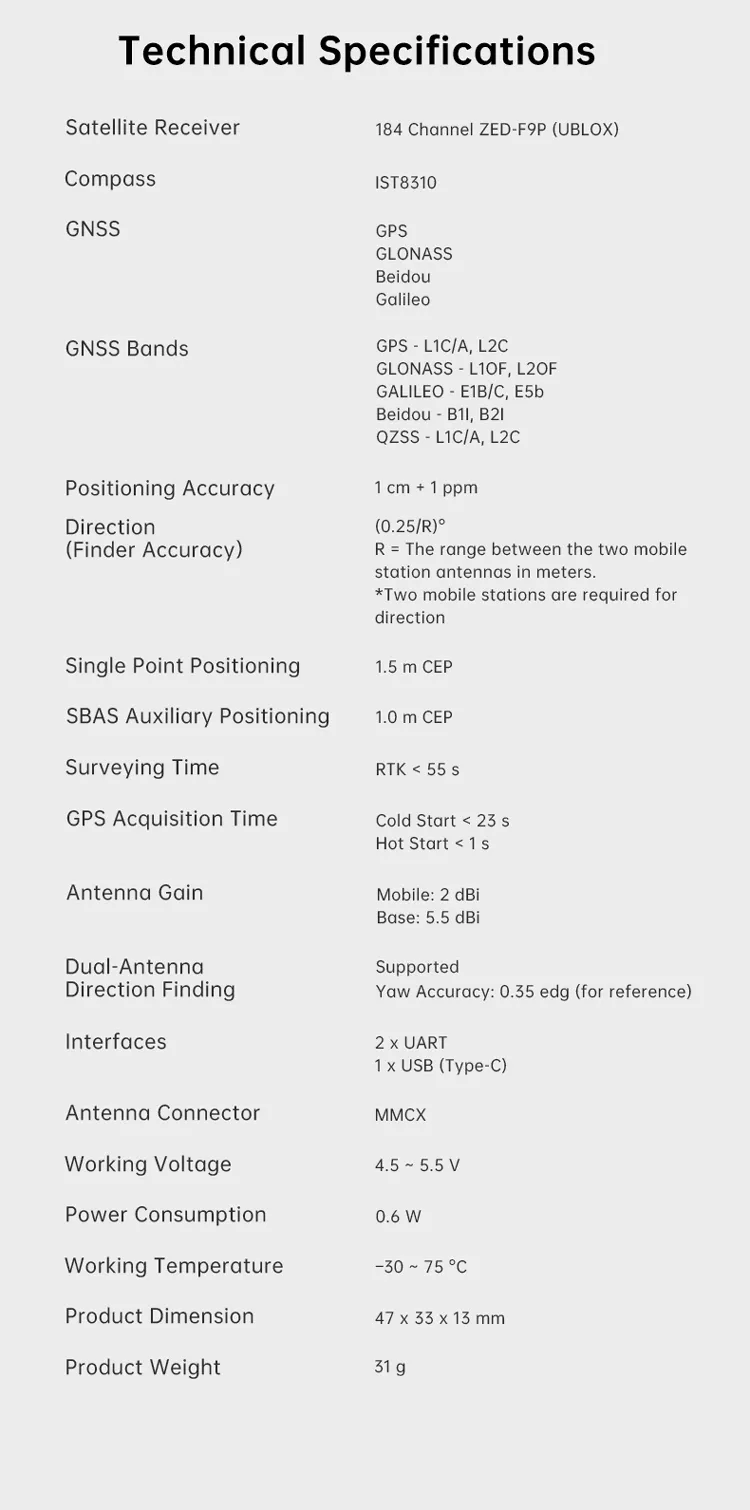 🔍 Home Shop Flight Controllers & Avionics F9P RTK Module F9P RTK Module 描述 Related products Quick view icon MS4525 Airspeed Meter Module Including Pitot TubeFlight Controllers & Avionics, GNSS & RTK Modules Request a Quote! Quick view icon RTK Positioning and Orientation ModuleFlight Controllers & Avionics, GNSS & RTK Modules Request a Quote! Quick view icon M9N GPS GNSS ModuleFlight Controllers & Avionics, GNSS & RTK Modules Request a Quote! Quick view icon N7 Autopilot Flight ControllerFlight Controllers & Avionics Request a Quote! Quick view icon Autopilot Anti-vibration Board For N7 Flight ControllerFlight Controllers & Avionics, Functional Payloads, GNSS & RTK Modules Request a Quote! Quick view icon Mounting Bracket for RTK Positioning and Orientation ModuleFlight Controllers & Avionics, GNSS & RTK Modules Request a Quote!