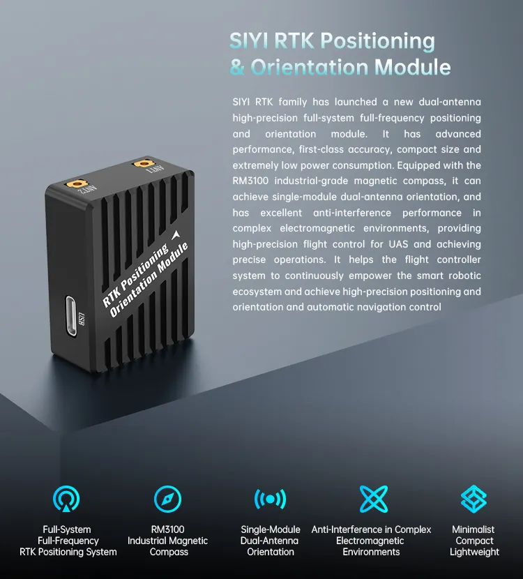 🔍 Home Shop Flight Controllers & Avionics RTK Positioning and Orientation Module RTK Positioning and Orientation Module RM3100全系统全频 RTK 定位系统, 工业磁罗盘 ,单模块双天线定向, 在复杂电磁环境下具有抗干扰能力, 简约、紧凑、轻巧 描述 Related products Quick view icon M9N GPS GNSS ModuleFlight Controllers & Avionics, GNSS & RTK Modules Request a Quote! Quick view icon Mounting Bracket for RTK Positioning and Orientation ModuleFlight Controllers & Avionics, GNSS & RTK Modules Request a Quote! Quick view icon Autopilot Anti-vibration Board For N7 Flight ControllerFlight Controllers & Avionics, Functional Payloads, GNSS & RTK Modules Request a Quote! Quick view icon F9P RTK ModuleFlight Controllers & Avionics, GNSS & RTK Modules Request a Quote! Quick view icon N7 Autopilot Flight ControllerFlight Controllers & Avionics Request a Quote! Quick view icon MS4525 Airspeed Meter Module Including Pitot TubeFlight Controllers & Avionics, GNSS & RTK Modules Request a Quote!